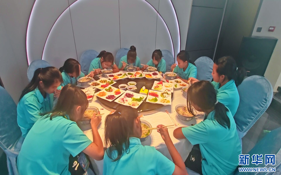 6日,参加2025“黄河母亲杯”沿黄河九省(区)青少年足球邀请赛的小球员们品尝兰州牛肉面。新华网发(马志鹏 摄)
