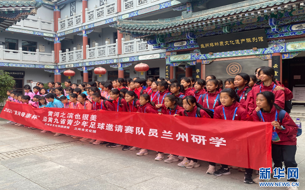 6日,参加2025“黄河母亲杯”沿黄河九省(区)青少年足球邀请赛的小球员们参观兰州非物质文化遗产陈列馆。新华网发(王梓涵 摄)