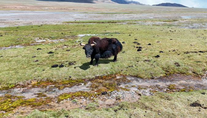 野牦牛在奎腾郭勒村巡视自己的领地。