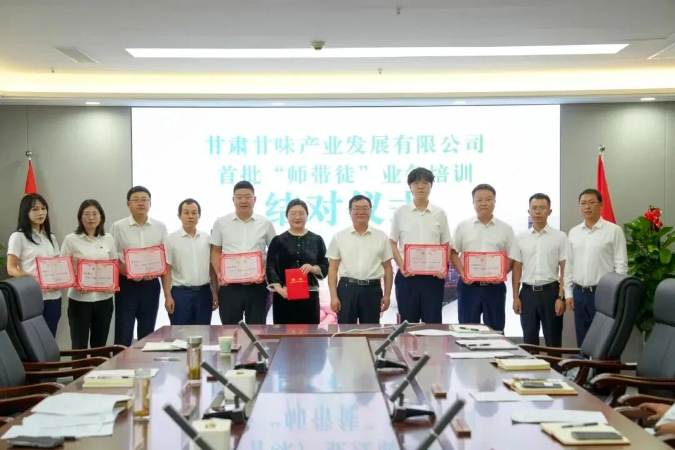 月27日,甘肃甘味产业发展有限公司举行首批“师带徒”业务培训结对仪式,7名业务骨干受聘导师,与13名青年员工结对,构建“甘味”人才培育新机制。
