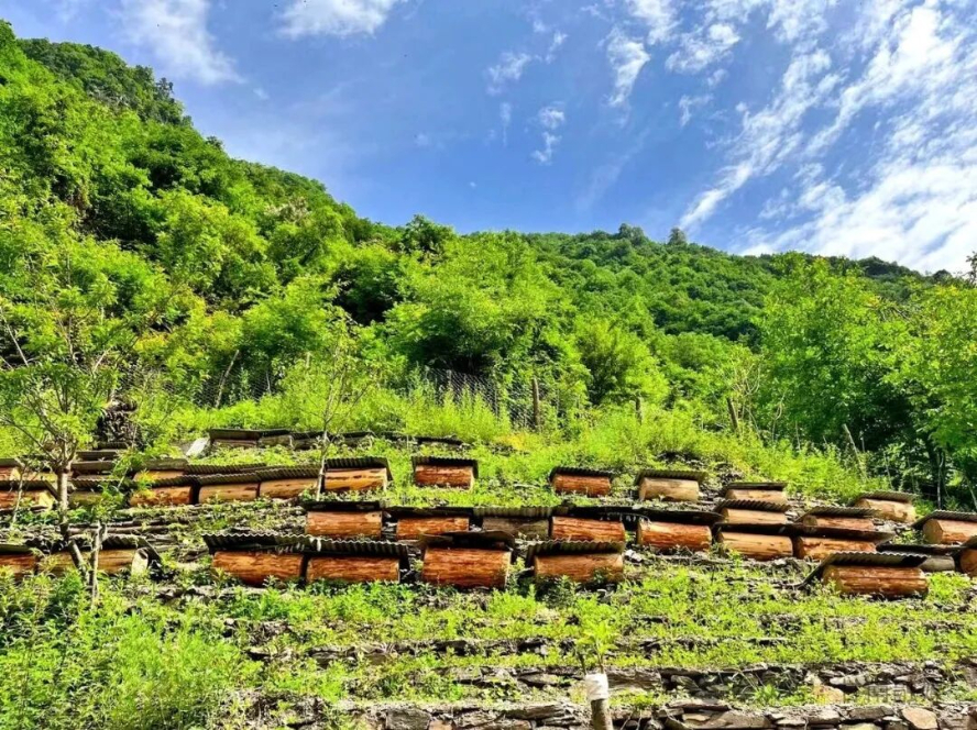 舟曲县博峪镇,高山峡谷纵横交错,宛如一处世外桃源。每到这个时节,大片的纹党花竞相绽放,恰似一幅天然画卷,成为蜜蜂们的乐园。山野间,一排排棒棒槽错落有致,勤劳的蜜蜂在蜂箱间穿梭飞舞,奏响着丰收的序曲。