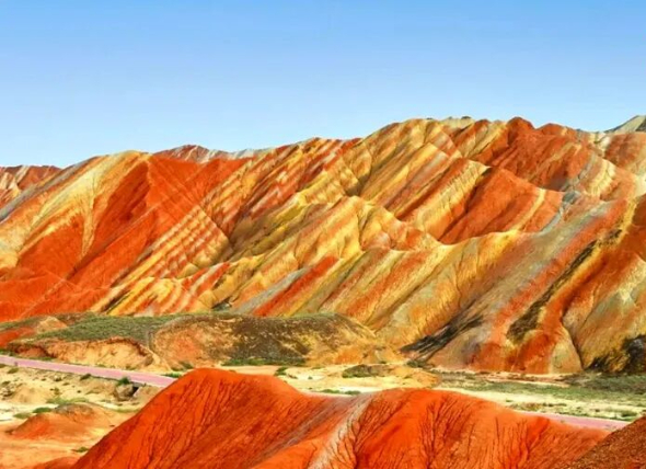夕阳西下,层层叠叠的丘陵仿佛被点燃,红、橙、黄、绿、青、蓝、紫在暮色中交融流淌,宛如一幅上天亲手挥洒的巨型油画。这片位于河西走廊咽喉地带的自然奇迹,正以其亿万年的地质积淀与绚丽多姿的视觉盛宴,吸引着全球游客纷至沓来,成为丝绸之路上不可错过的瑰宝。