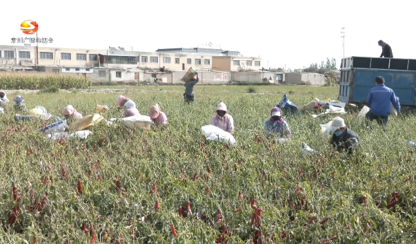 金秋时节,肃州区三墩镇万亩辣椒喜获丰收季,田间地头农户们忙着采收辣椒,奏响致富“椒”响曲。