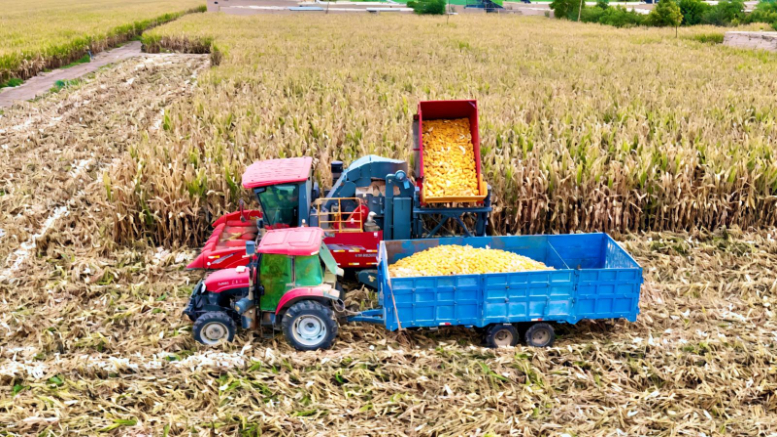 朱王堡镇7.78万余亩玉米已陆续进入集中收获期。记者看到,多台大型玉米收割机正穿梭在田间地头,摘棒、剥皮、秸秆粉碎等工序一气呵成。伴随着机器的轰鸣声,金黄饱满的玉米棒被源源不断地倒入运输车辆,高效的机械化作业让“丰收在望”稳稳变为“颗粒归仓”。