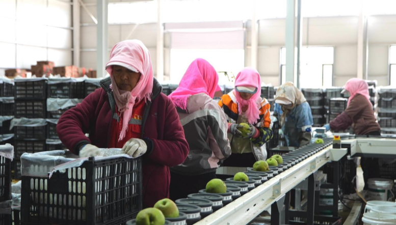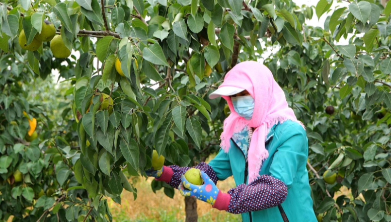 “我在这干了三年了,春天锄草、压枝,夏天就是疏果、套袋,秋天就是摘果、选果,一个月能挣4000-5000元。”工人蔺雪梅笑着说。言语之间,是对这份工作的踏实与满意。