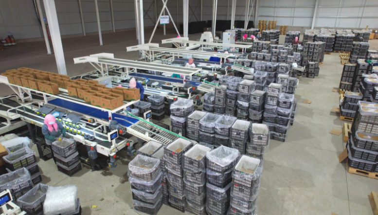 种植园不远处,数字化智能分选设备正在车间有序运转。这套先进系统能够精准检测每颗梨的糖度、大小、色泽及表面瑕疵,实现自动化分级,每小时处理量超1吨,相比传统人工分拣,极大提升了分选效率和产品标准化程度。