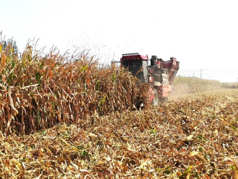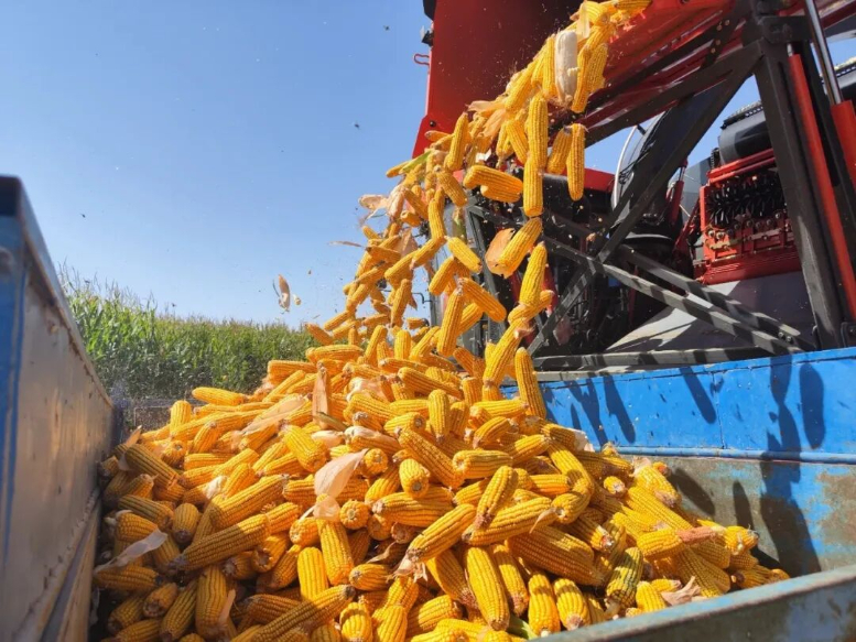 走进田间,每一株玉米都缀满沉甸甸的果穗,尽显饱满长势。伴随着阵阵轰鸣,玉米收割机与运输车开足马力穿梭田间,收割机械摘棒、剥皮、秸秆粉碎等工序一气呵成,金黄饱满的玉米棒源源不断倾泻而出、装入运输车辆,高效有序地机械化作业,让“丰收在望”稳稳变为“颗粒归仓”。