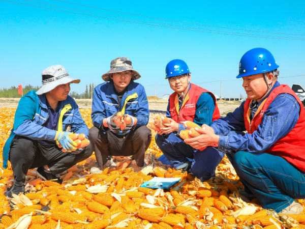 国网金昌供电公司员工深入玉米种植基地开展秋收安全用电专项检查与宣传。全面排查农灌线路、配电设备安全隐患,并向农户发放安全用电资料,讲解秋收期间用电注意事项。张前 摄