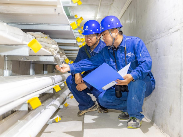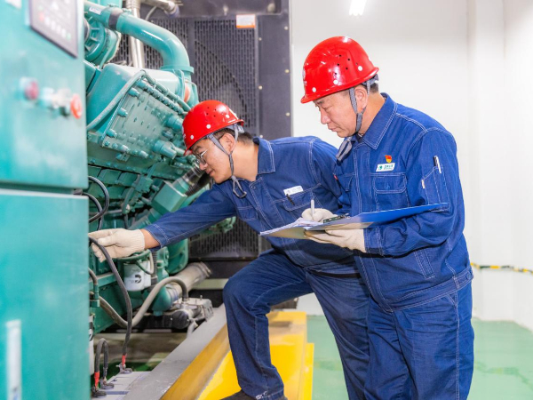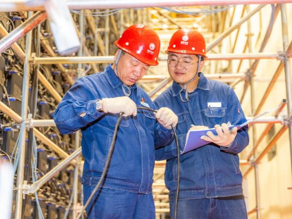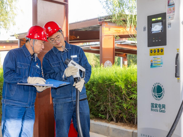公司员工在光储充交直流微电网综合示范项目现场开展巡视,保障新能源汽车出行。