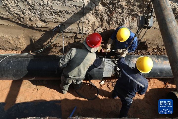 工人们在兰州市皋兰县一处供热改造项目现场更换供热管道。(兰州市委宣传部供图)