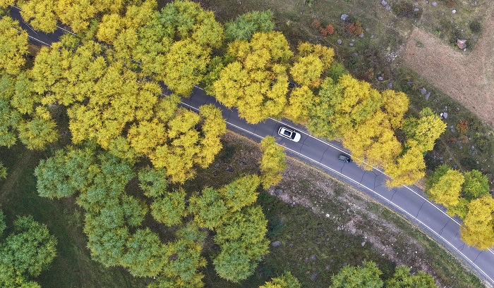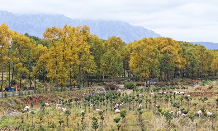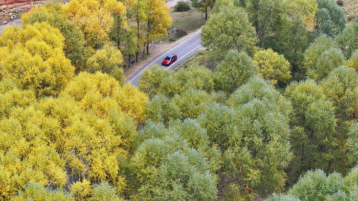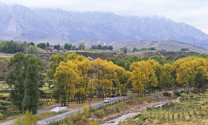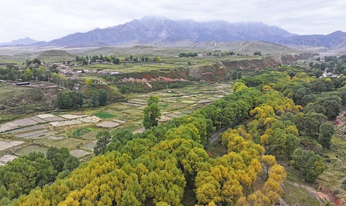 金秋时节,祁连山脚下的甘肃省民乐县洪水镇山城村层林尽染,秋意愈浓,雪山、村庄、河流、植被在“浓墨重彩”的秋色下,宛如一幅流动的诗意长卷,散发着别样的韵味。(王晓泾)