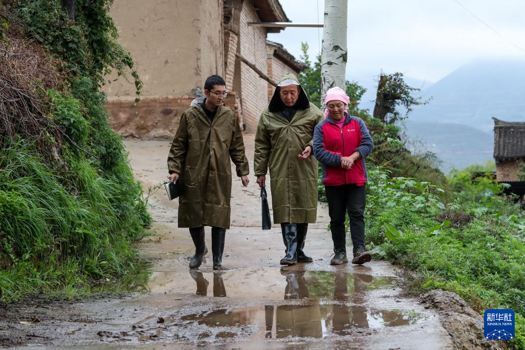 9月28日,在定西市漳县武阳镇汪家河村卢家屲社,乡镇干部摸排转移安置人员情况。新华社记者 郎兵兵 摄