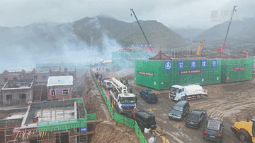 10月1日,细雨蒙蒙,甘肃省兰州市榆中县举行灾后重建集中安置点项目主体结构封顶仪式。6个安置点的集中安置房全面封顶,标志着当地灾后重建工作取得重要阶段性成果,为受灾群众早日重建家园、恢复正常生产生活奠定了坚实基础。