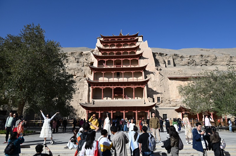 国庆中秋假期,甘肃省敦煌市旅游火、消费旺。(张晓亮)