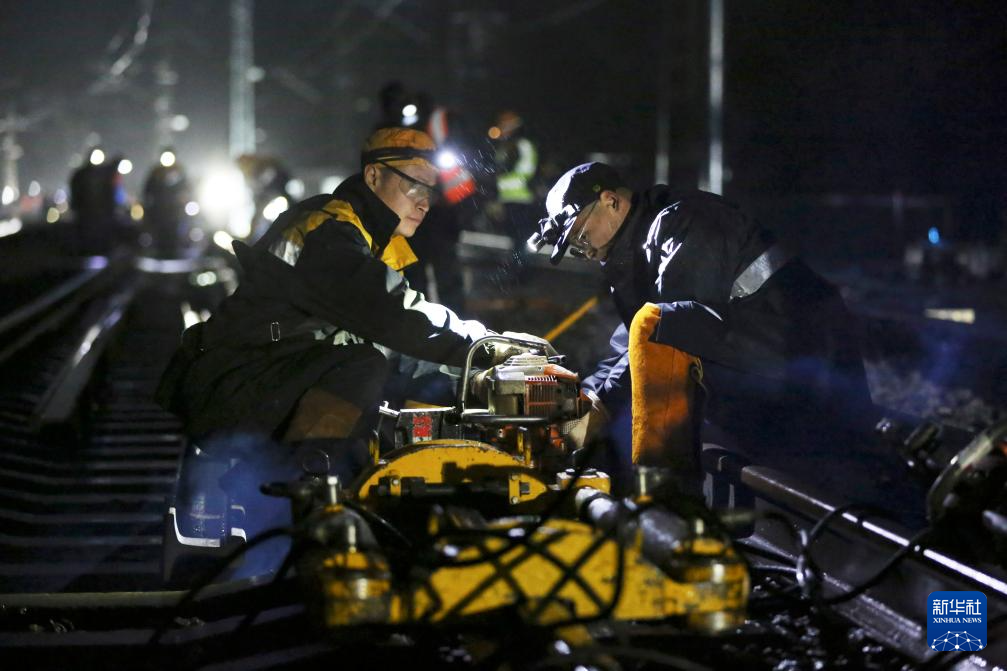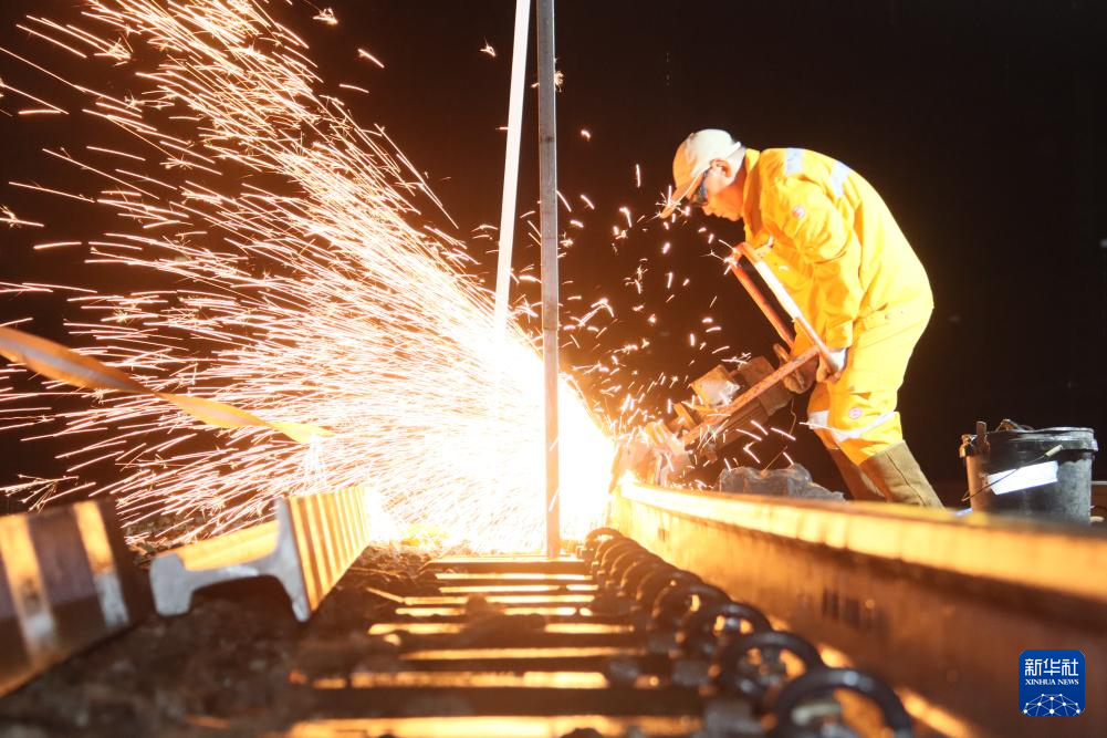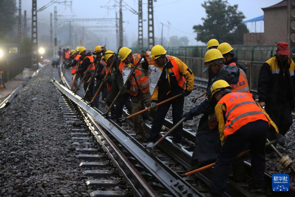 10月10日,铁路职工在陇海铁路甘肃省榆中县境内进行集中修施工作业。新华社发(王克贤摄)