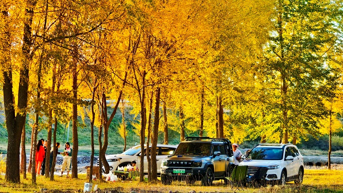 近日,甘肃省张掖市民乐县永固镇姚寨村秋意盎然。在夕阳的照射下,远山、村庄、道路与层林尽染的森林相互交织,勾勒出一幅如诗如画的秋日盛景,吸引众多游客前来观赏、打卡。(王晓泾 杨晓丽)
