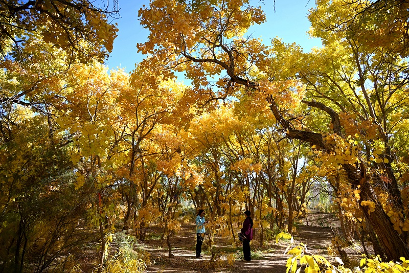 甘肃敦煌:金秋大漠胡杨美-新华网