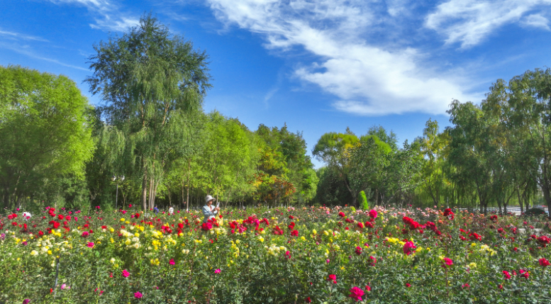 国庆中秋假期,嘉峪关市东湖生态旅游景区月季花进入盛放期,或一枝独秀、或花团锦簇,层层叠叠、姹紫嫣红,为国庆、中秋双节献礼,吸引众多游客、市民游玩打卡。融媒体中心记者 李巍 摄