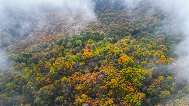 子午岭地跨甘肃、陕西两省,处于黄土高原腹地。晚秋时节,在甘肃省庆阳市华池县境内的子午岭林区,绵延起伏的群山被红黄绿相间的树叶装扮,宛如一幅色彩斑斓的油画。(剪辑:刘欣瑜、马增庆 拍摄:田伟、王波波)