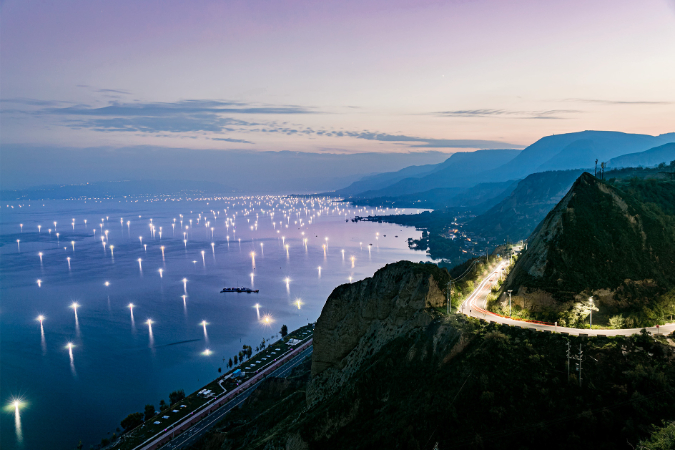 永靖县黄河三湾是该县依托黄河生态治理打造的综合性景区,以碧水丹霞景观和多样化旅游体验为特色,同时承担着黄河上游生态屏障的重要功能。近年来,刘家峡水库沿岸居民利用丰富的水库资源,大力发展网箱养鱼产业,渔火自然形成了“石梁清浅月昏黄,隔岸渔灯数点光”的诗意画卷。