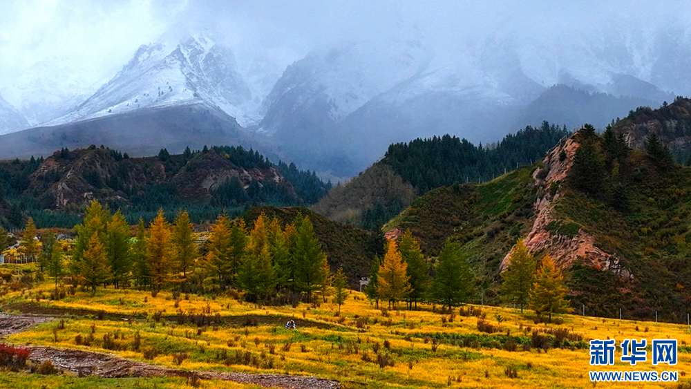 【“飞阅”中国】甘肃肃南:彩林映雪山-新华网