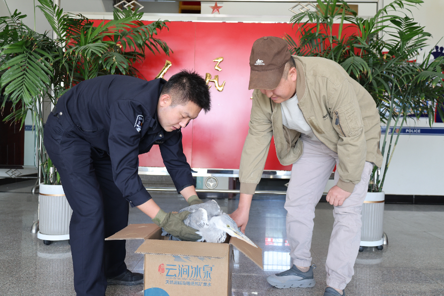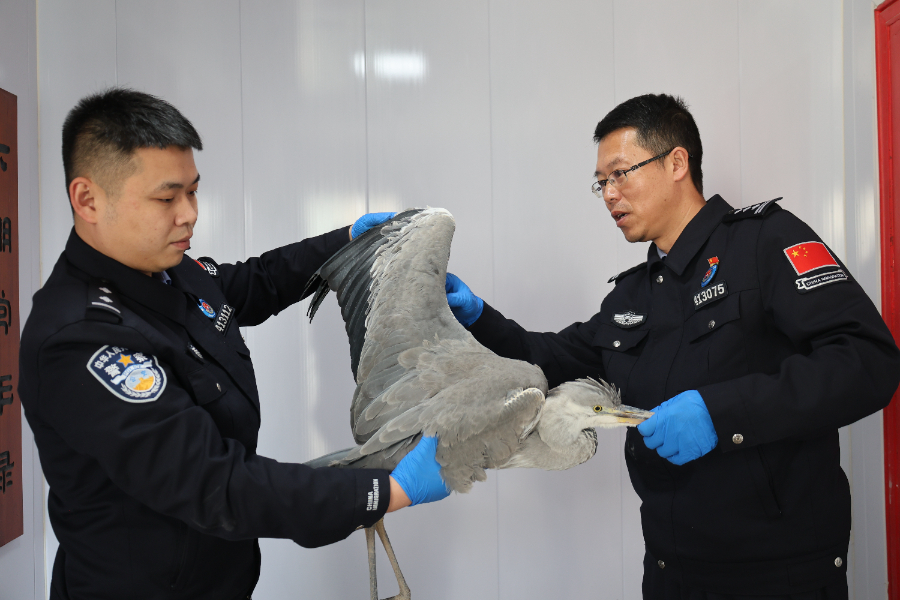10月13日,甘肃边检总站酒泉边境管理支队明水边境派出所民警在244县道巡逻时,发现一只翅膀受伤、无法飞行的野生鸟类。民警随即展开初步救治,并联系野生动物保护机构进行后续处置。经确认,该鸟为国家二级保护动物苍鹭,初步判断其可能在迁徙或觅食途中意外受伤。