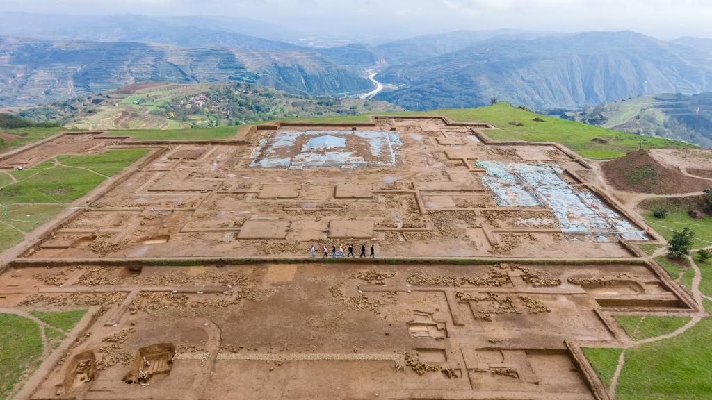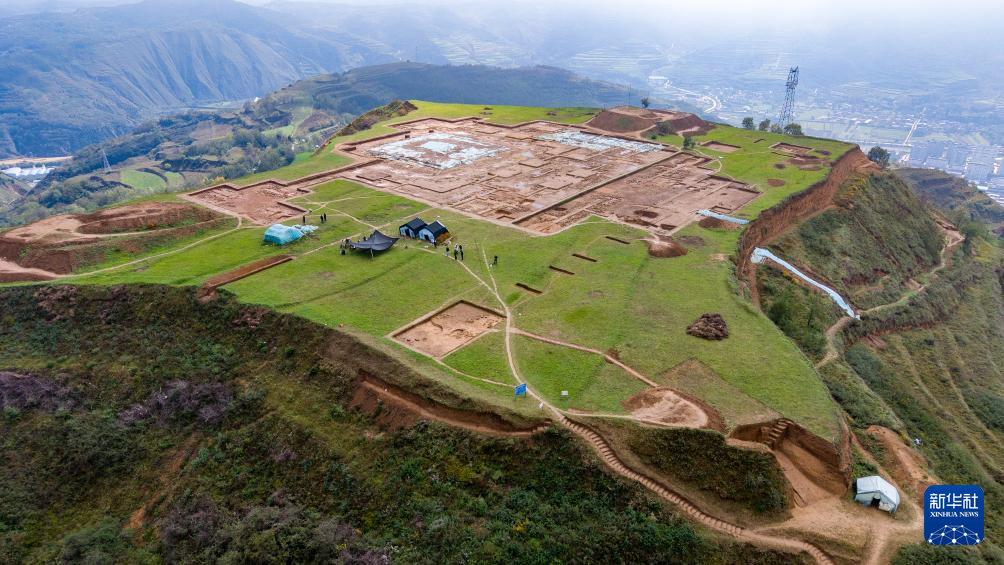 这是10月15日拍摄的甘肃省陇南市礼县四角坪遗址考古发掘现场(无人机照片)。新华社记者 陈斌 摄