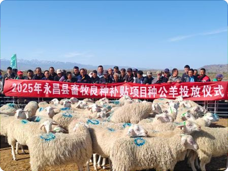此次发放仪式是永昌县落实甘肃省2025年畜牧良种补贴项目的重要举措。据了解,该项目为永昌县安排补助资金61万元,其中45万元专项用于肉羊良种补贴,集中采购优质种公羊300只,包括180只东佛里生乳肉兼用型奶绵羊种公羊、120只湖羊种公羊,通过“财政补贴+农户自筹”的模式,在甘肃元生农牧科技有限公司、甘肃润牧生物工程有限公司两大场地同步开展发放。