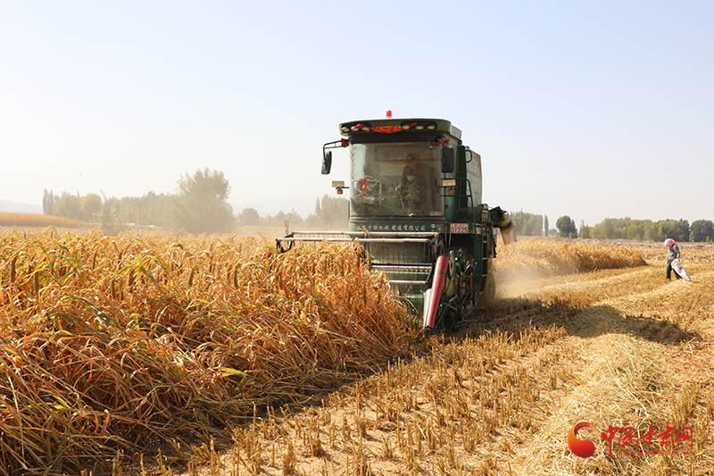 秋风送爽,谷穗飘香。近日,临泽县倪家营镇马郡村的谷子迎来了收获季,农户们利用晴好天气抢收谷子,伴随着隆隆机械声,大型收割机开足马力在田间来回穿梭,人来车往,处处呈现出一派丰收的喜人场景。