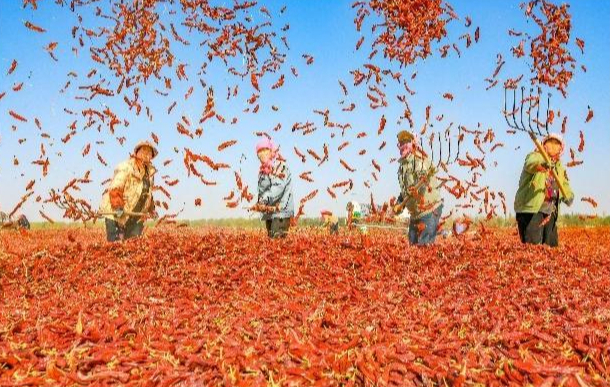 嘉峪关:千亩红龙辣椒喜丰收-新华网