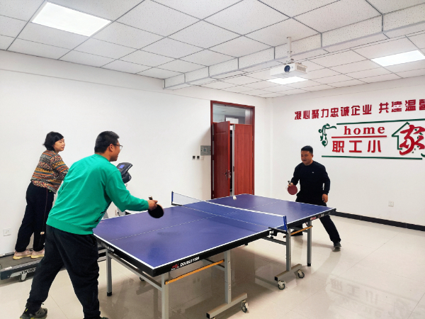 “来来来,这球我可不会让着你!”职工小杨手持球拍,正与同事小王进行着一场激烈的乒乓球对决。只见白色的乒乓球在球台上来回飞舞,两人时而奋力扣杀,时而巧妙搓球,引得一旁观赛的同事们不时发出阵阵喝彩。除了乒乓球桌,职工小家里的跑步机、棋牌桌等设施也各有“主人”,有的在跑步机上挥洒汗水,有的则围坐在一起切磋棋艺,大家脸上都洋溢着轻松惬意的笑容。