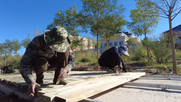 肃北县G571党河东岸沿线人行步道建设项目技术负责人张亚军表示:“本项目于6月10日开工建设,经过4个月施工,目前已完成仿古廊亭、水榭凉亭及木栈道、亮化等工作,正在进行口袋公园互动景墙、花瓣艺术廊架打磨喷漆,下一步将进行健身器材安装等工作,预计11月初完工。”