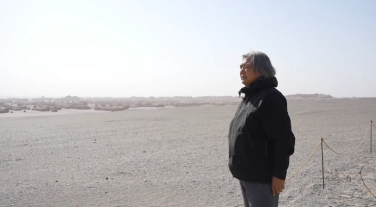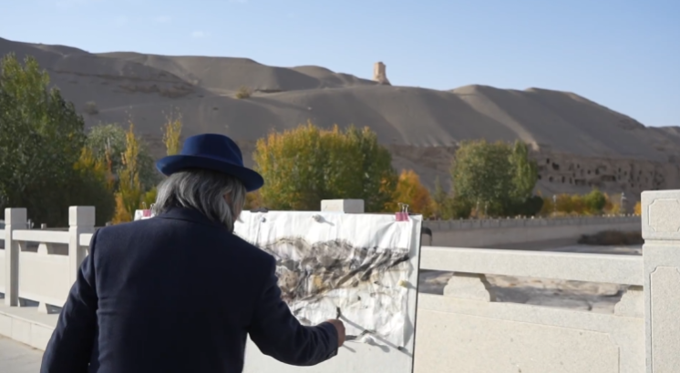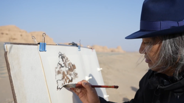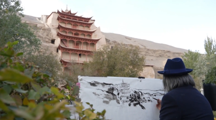 戈壁的辽阔、石窟的庄严、沙山的起伏,深深激发了吴为山的创作灵感。在雅丹地貌前,他执笔铺纸,描摹眼前的壮阔景致,自然的磅礴经过艺术的加工,呈现出这片土地的精神底色。