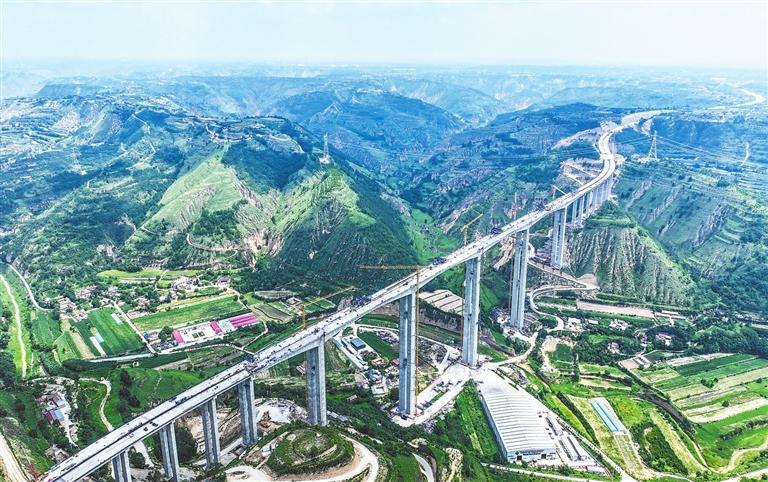 7月12日,G309线合水至西峰段公路盖家川特大桥建设有条不紊。新甘肃·甘肃日报通讯员 陈飞