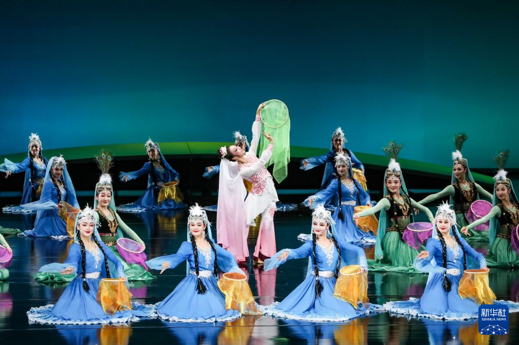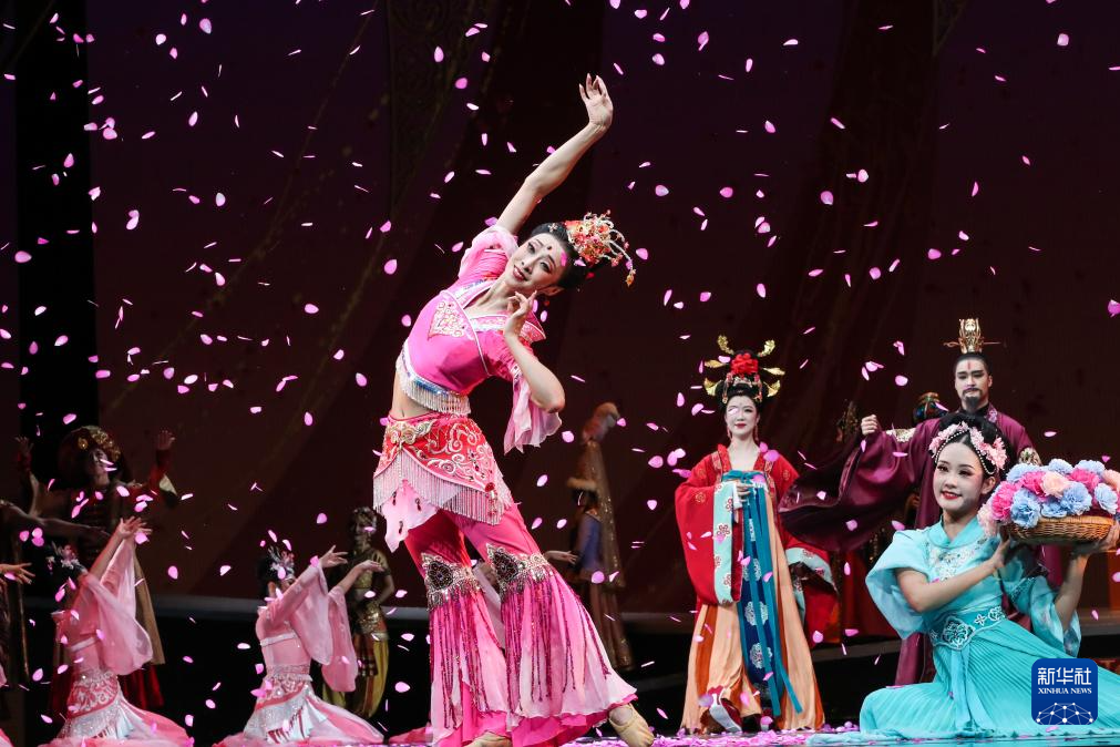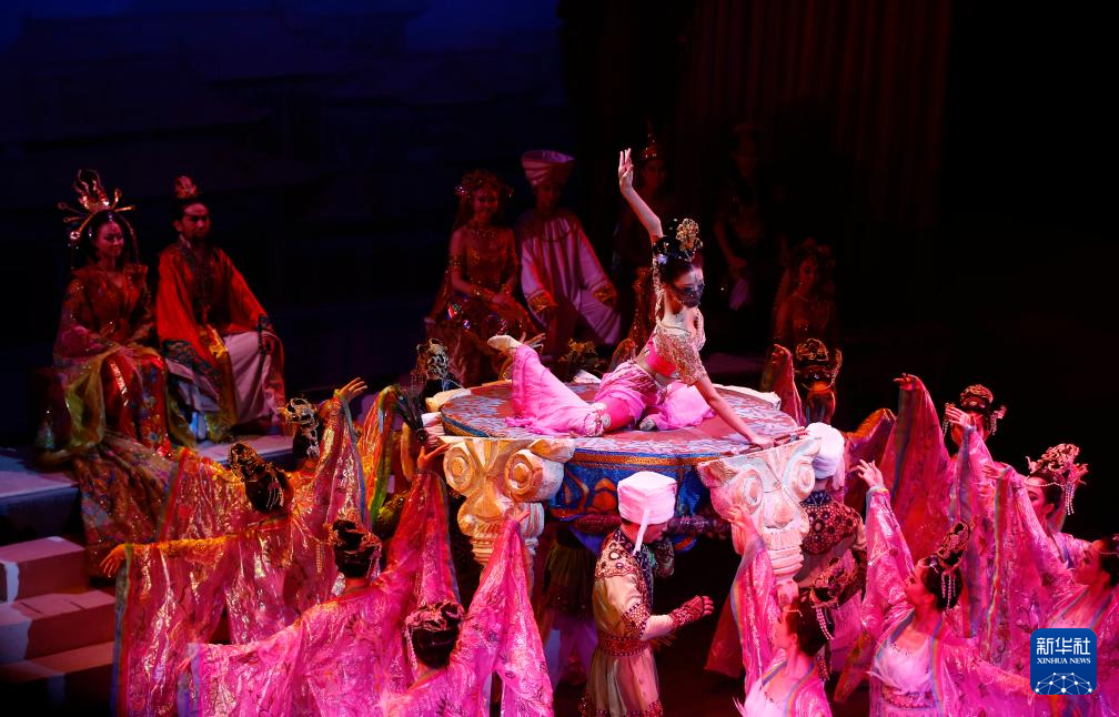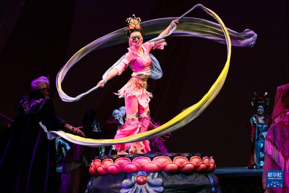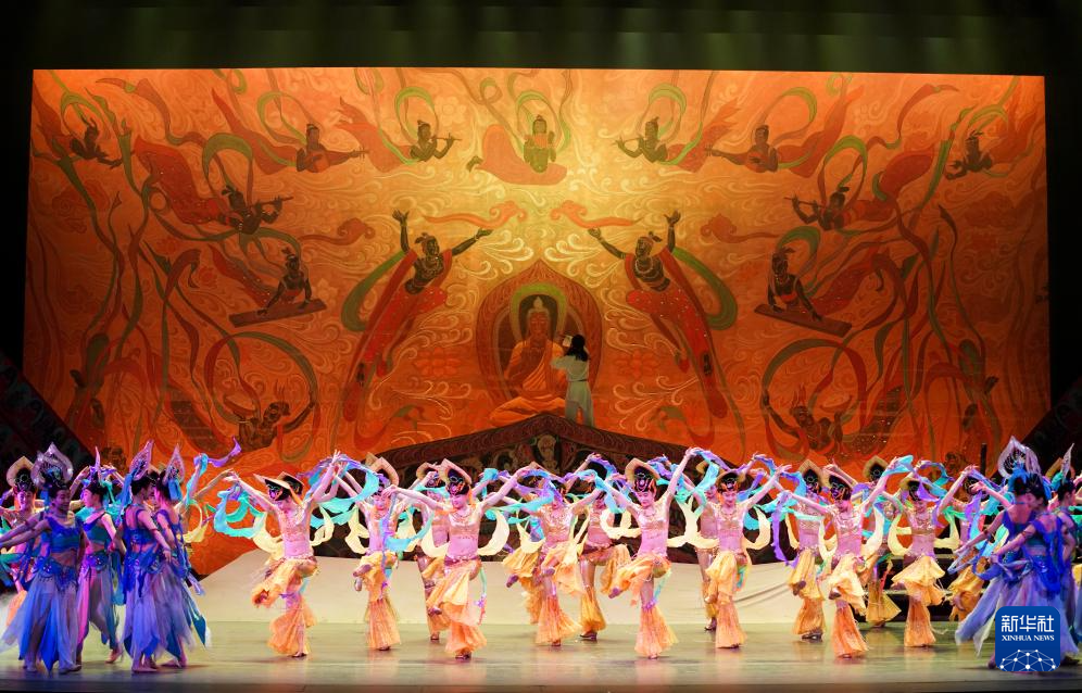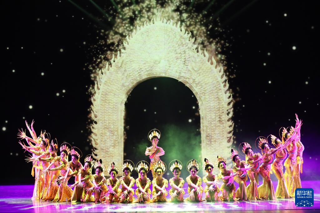 演员在甘肃大剧院表演2025年新版《丝路花雨》(2025年8月28日摄)。新华社记者 郎兵兵 摄