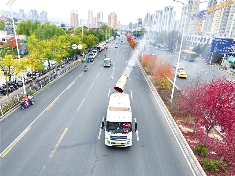 雾炮车在重点路段作业