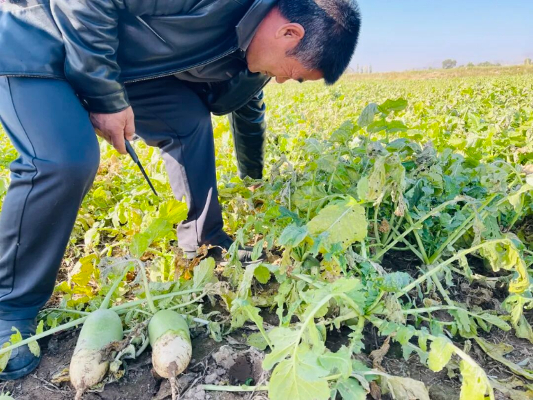 近年来,宁远堡镇东湾村立足地域资源优势,深耕特色种植产业,通过优化种植技术、加强田间管理,持续提升绿萝卜的品质与产量。今年4月,国家知识产权局认定东湾绿箩卜为国家“地理标志产品”,让这一传统“家常菜”正式升级为“品牌”,附加值大幅提升。