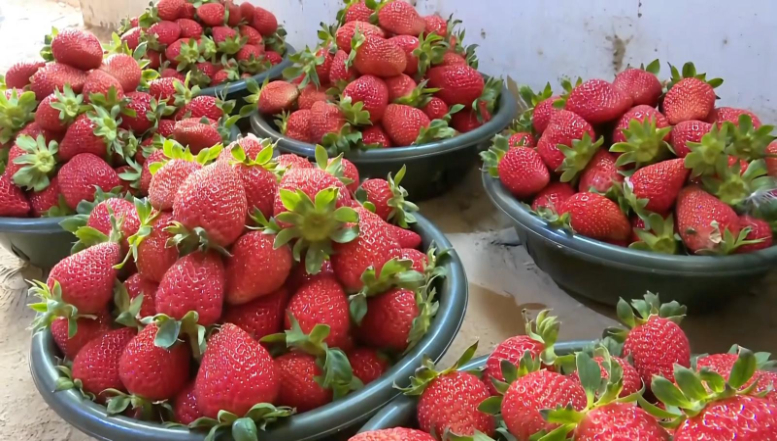 敦煌市肃州镇武威庙村戈壁农业园区种植户刘洋说:“今年,我们‘一口甜’草莓又增加了大概七亩地,主要有香野、红颜,还有白珍珠草莓,现在已经陆续上市了,产量比较好,品质也比较好。现在我们主要销售到敦煌的各大超市,还有农贸市场等,深受敦煌市民的喜爱。”