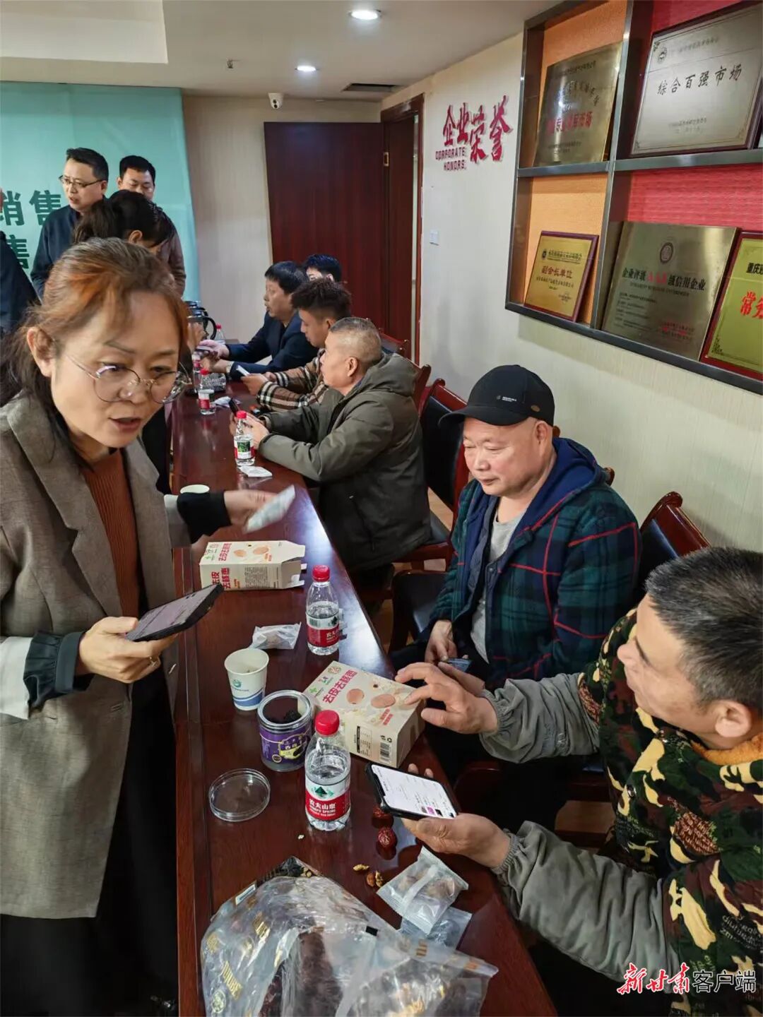 李彦华(左)与重庆销售商建立“朋友圈”。