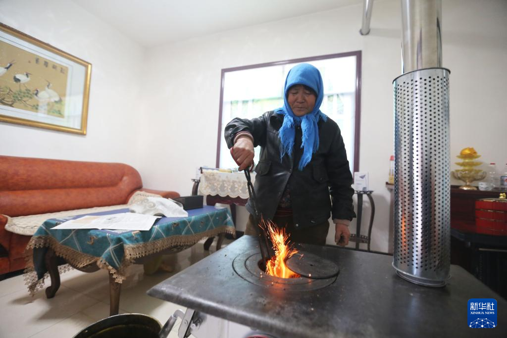 11月18日,在甘肃省定西市安定区凤翔镇中川村,刚领到新煤炉和取暖用煤的村民生火取暖。新华社发(王克贤摄)