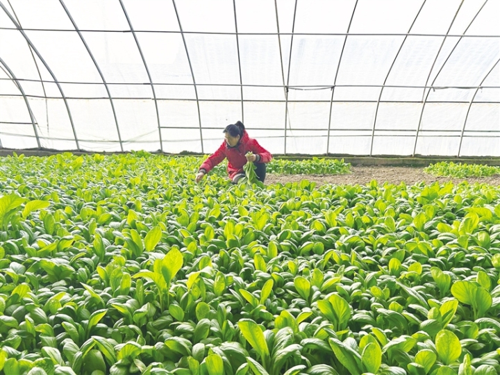 连日来,金塔县古城乡头号村温室种植基地的油菜和香菜陆续进入采摘期,农户张翠莲正在采摘。她说:“我种了3棚温室蔬菜,一部分销售给商贩,一部分就近赶集自售,每棚年收入3万元左右。”