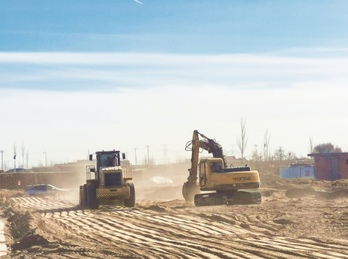 近年来,景泰县坚持“集中连片、节水优先、因地制宜”推进高标准农田建设,累计建成农田供水工程总库容1964万方,高标准农田34.3万亩。图为漫水滩乡高标准农田建设项目现场,工作人员正在进行土地平整。