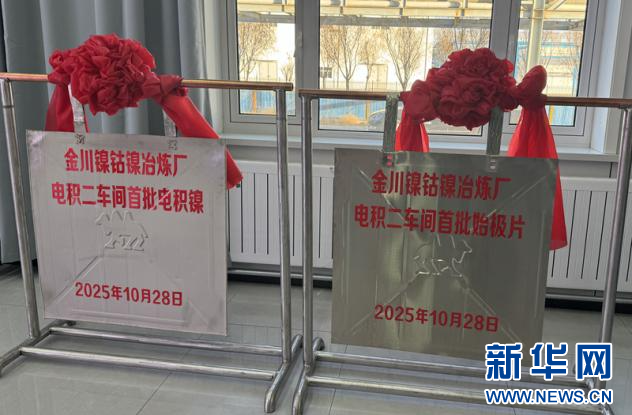 图为金川集团镍冶炼厂电积二车间生产的首批电积镍和始极片。新华网(刘欣瑜 摄)