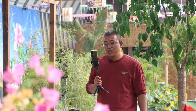 “家人们看这蝴蝶,这就是金昌秋天的惊喜!”采访当天,王得永的直播准时开启。手机镜头扫过大棚里的满眼绿意,停在挂满枝头的新鲜蔬果上,直播间里瞬间热闹起来——“想去打卡”“这环境也太治愈了”的弹幕接连刷屏,不到半小时的一场直播就让他的直播号新增67名粉丝。