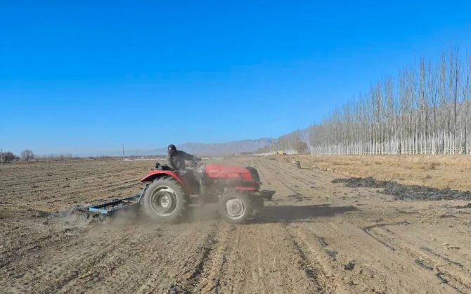 针对不同种植区域实际情况,工作人员灵活运用拖拉机悬挂双层弹齿耙、圆盘搂膜机等设备往复作业,高效搂集、收集残膜并集中装车,转运至指定地点妥善处置。对机械作业盲区,专门安排人员对地块地埂、毛渠边等区域残留地膜进行全面补收。通过精细化、针对性作业,减少了环境污染且保证作物来年正常生长。