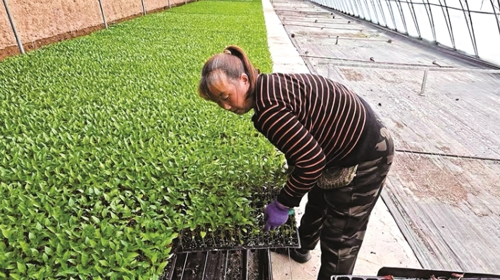 靖远县金阳光蔬菜种植农民专业合作社负责人高红梅说:“我们坚持合作社+基地+农户的运行模式,一方面通过订单育苗满足规模化种植需求,另一方面为零散农户提供代育服务和技术指导。目前为止,已经销售了260多万辣椒苗了,主要满足周边农户的需求。”在合作社务工的杜海花说:“冬季育苗的关键是控温保湿,我们的基质土都是经过消毒的专用配方,能有效预防土传病害。每盘穴盘的播种量都要精准控制,播多了会影响幼苗生长,播少了又浪费资源。我在这里工作,不仅学会了专业育苗技术,每月还能拿到稳定工资,在家门口就能挣到钱。”