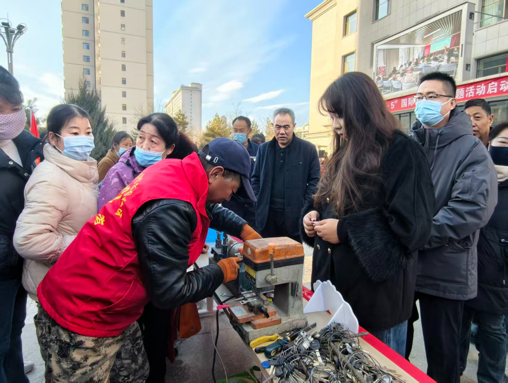 仪式结束后,16个主题服务区同步开放,覆盖文化传播、健康服务、民生保障等领域。武威市博物馆志愿者带来流动展览,生动解读五凉文化与民族融合;医护志愿者为居民免费检测血压、血糖,并提供专业咨询;手工制作区吸引居民体验扭扭棒、小香包等手作乐趣;红十字会志愿者现场演示心肺复苏,互动教学广受好评。此外,政策宣传、智慧助老等便民服务有序开展。