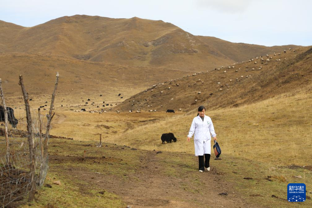 新华社兰州12月12日电(记者梁军、崔翰超)秋去冬来,甘肃省甘南藏族自治州的草原上留下万里空旷。草木隐现的牧道上,款款走来一道白色的身影。她是39岁的基层医生王蒋艳,人们亲切地称呼她为“草原上的曼巴”。