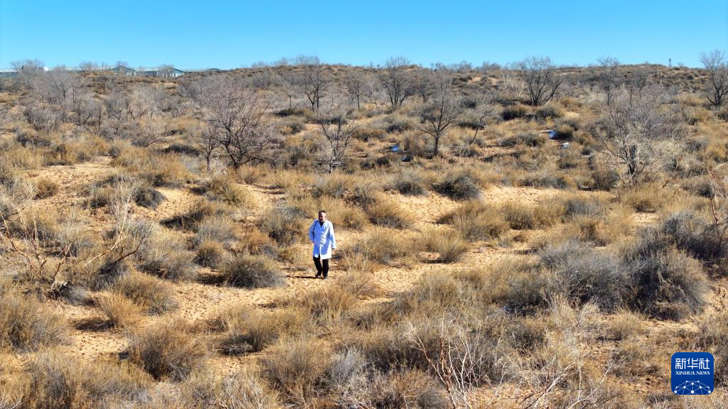 12月4日,张万泰行走在古浪县境内的腾格里沙漠南缘。新华社发