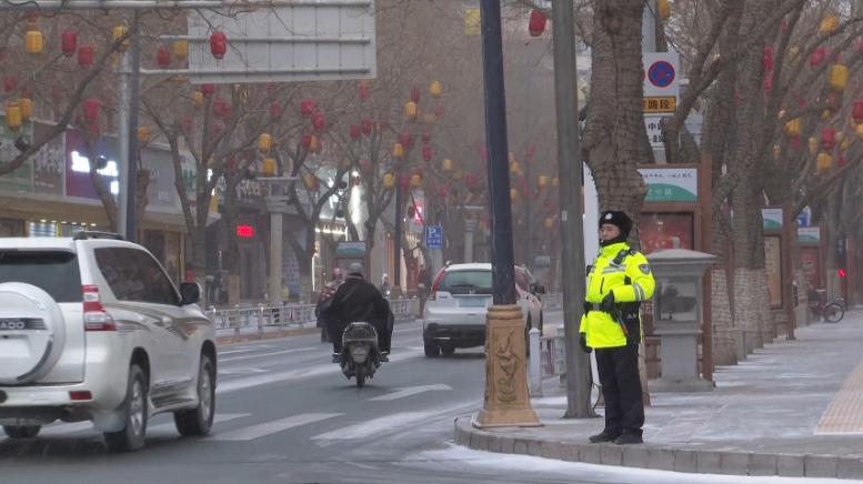 敦煌市公安局交管大队民警许文杰说:“大雪纷飞,道路结冰,我们交警在每一个主要路口都坚持执勤。在此提醒广大市民朋友们,出行注意减速慢行,与前车保持安全距离,让我们共同维护安全的交通环境。”(杨俊雅 芦萍)